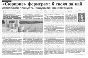 «Це просто land grab, як англійською називається феномен силового витіснення дрібних фермерів з їхньої землі великими агрокомпаніями. Таким чином будуть просто «віджимати» землю в одноосібників», — наголошує експерт. Він прогнозує, що селян змусять позбуватися землі, утримувати яку багатьом стане невигідно.